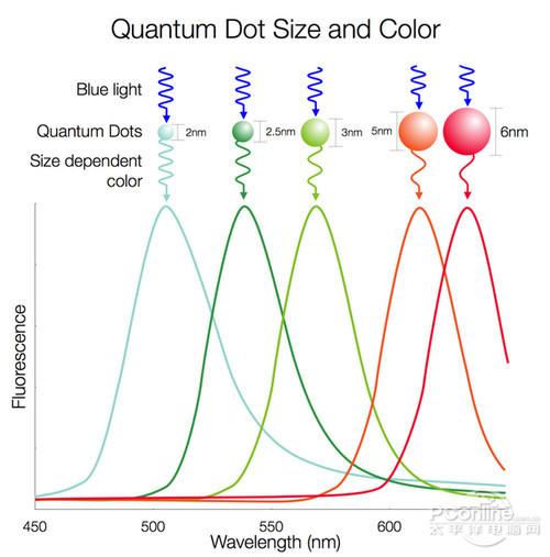簡(jiǎn)單通俗的說(shuō),量子點(diǎn)的光電性質(zhì)與以往的發(fā)光顯示顆粒大不一樣,量子點(diǎn)因?yàn)轭w粒非常小,以納米為單位,導(dǎo)致量子點(diǎn)的顯示顏色是以改變顆粒的大小形狀而進(jìn)行改變,也正因?yàn)槿绱?,理論上?lái)講,量子點(diǎn)顯示的色譜更具有連續(xù)性,成本也會(huì)更低。